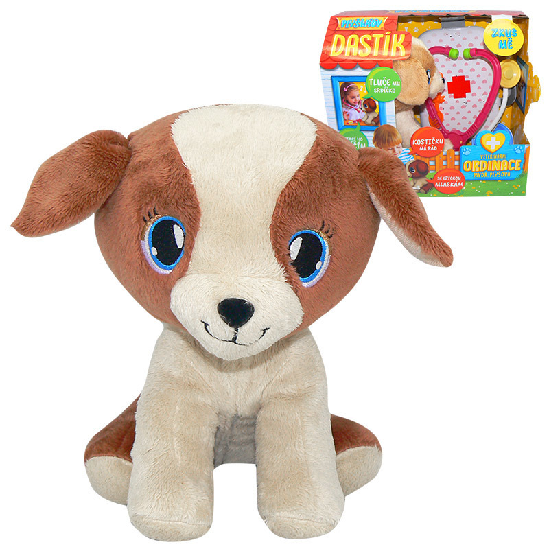 Krásný plyšový pejsek na baterie, který štěká,rád si hraje s kostí a má i vlastní veterinární ordinaci kde pomocí stetoskopu mužeš slyšet jak mu bije srdíčko. prečítať celé