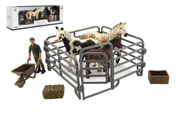 Zvieratká domáca farma plast kôň s doplnkami sada 4 druhy v krabičke 43x14x10cm