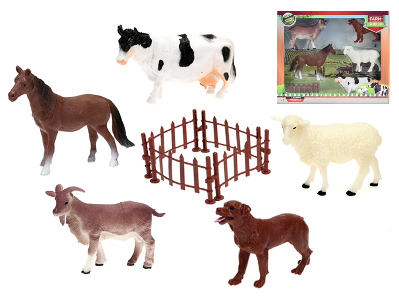 Zvířátka farma 10-12cm 5ks s plotem v krabičce