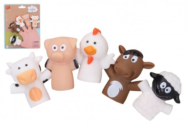Maňásek prstový zvířátko domácí farma guma 5cm na kartě 16x20,5cm