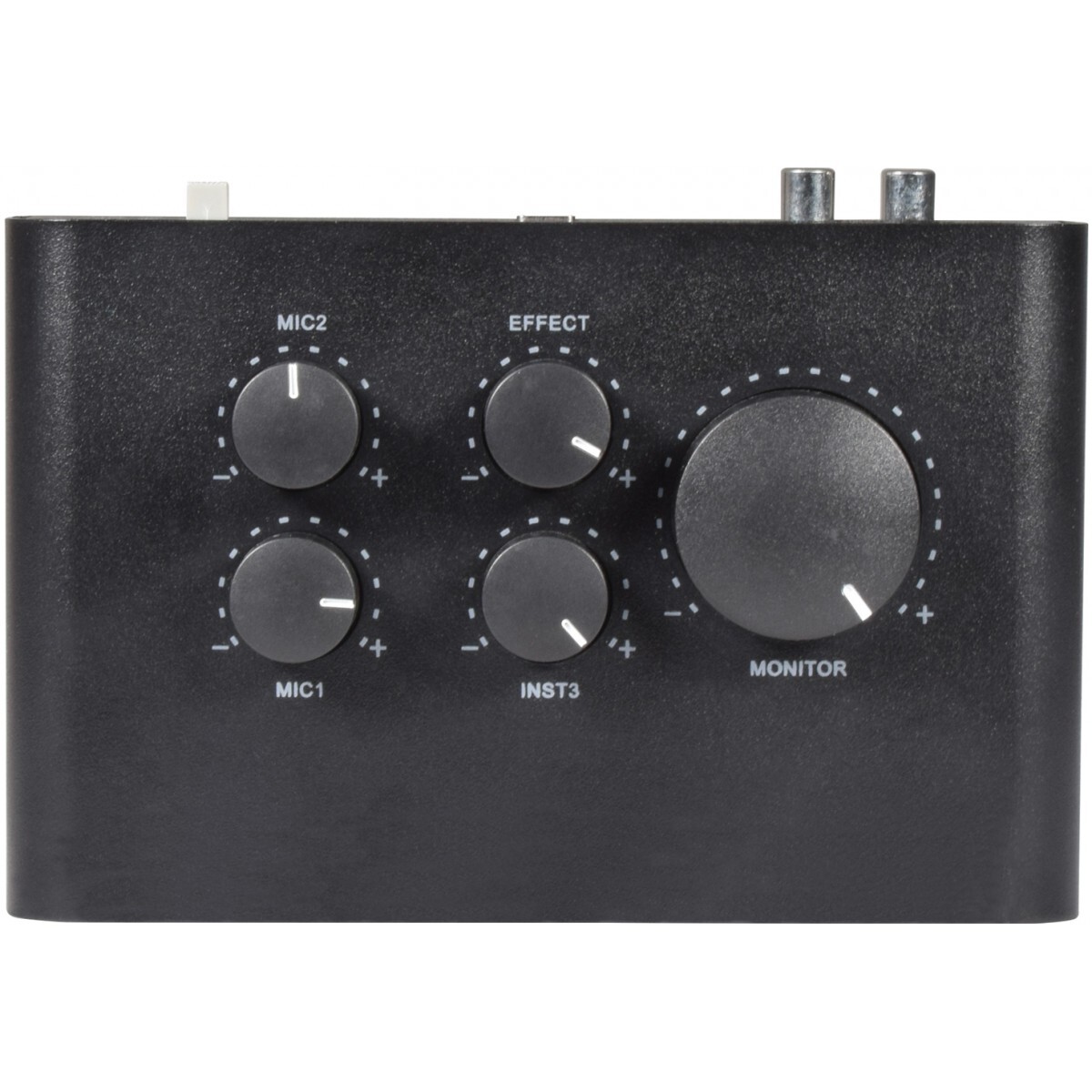 Stolní USB zvuková karta pro počítačové nahrávací studio. Obsahuje 2 nezávislé mikrofonní vstupy s konektory XLR/jack a samostatný nástrojový vstup 6,3 mm. Každý vstup má ovládání gain a je zde volitelný echo efekt s odděleným ovládáním. Monitorování probíhá přes stereo 6,3 mm sluchátkový...